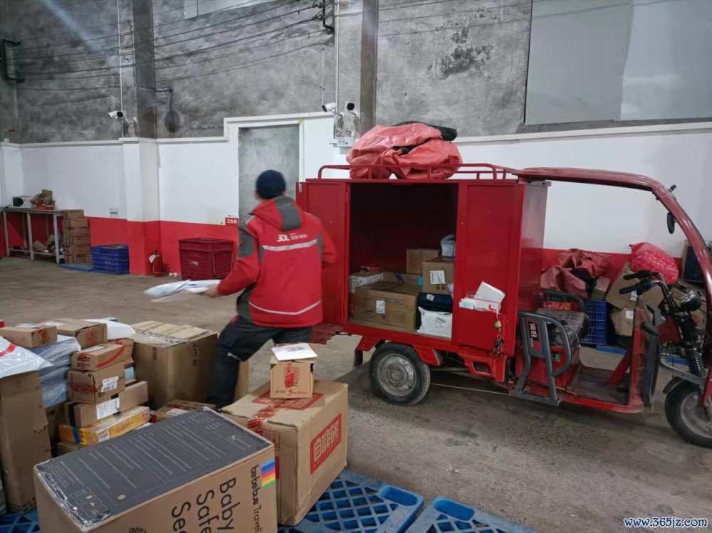 从记者停好车走进仓库的几分钟内,依然有3辆满载网购货色的配送车不时开走。而此时,仓库里还有4位配送员在忙着扫描装车,王梅等于其中一位。